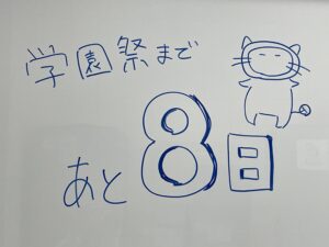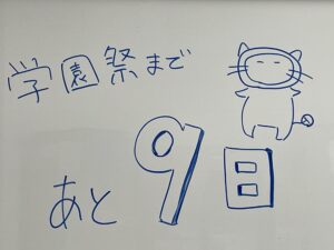 学園祭まで残り9日!1桁になりました!学校内も学園祭の話題で賑わいを見せています!