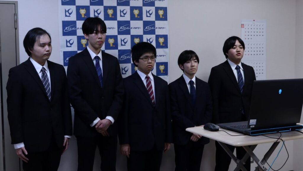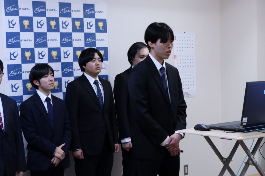 これは、当校の姉妹校である「あおもりコンピュータ・カレッジ」「いわきコンピュータ・カレッジ」「いさはやコンピュータ・カレッジ」を含めた4校合同による発表会です。当校からは、代表としてシステム・ネットワークコース5班のメンバーが参加しました。
