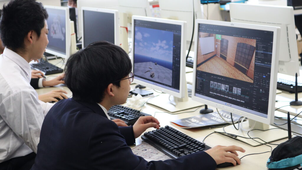 VR制作講座では、身近な課題を解決するためのアイデアをグループで共有し、Unreal Engine を使ってVR空間上にツールをデザインしました。発表会では、それぞれ個性のある作品が披露され、参加者同士で感想を共有する姿が見られました。