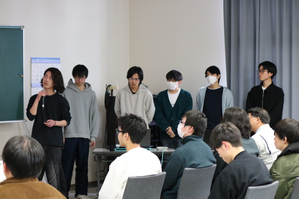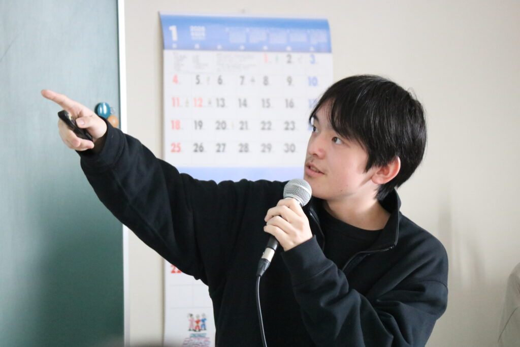 発表後には質疑応答が行われ、質問や意見交換が活発に交わされました。発表者は質問に対し、分かりやすい表現を心掛けながら、相手に理解してもらえるよう丁寧に対応していました。このやり取りを通して学生同士が研究内容をより深く理解し合い、発表する側・聞く側の双方にとって学びの多い時間となりました。