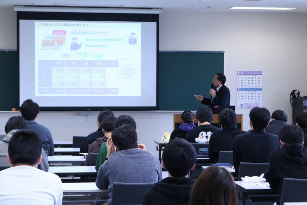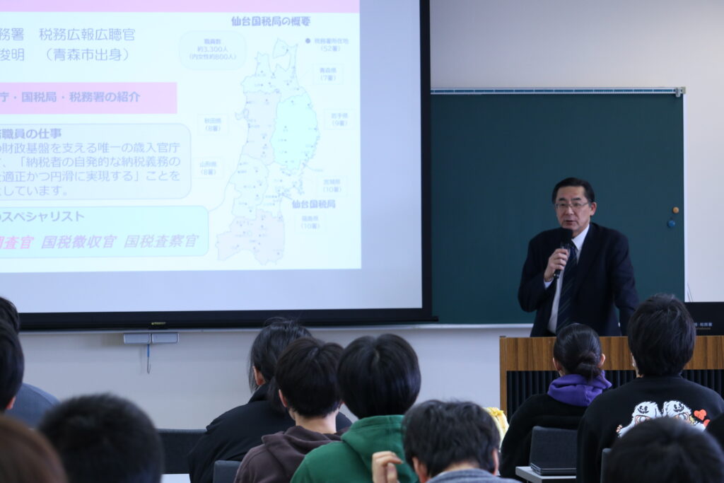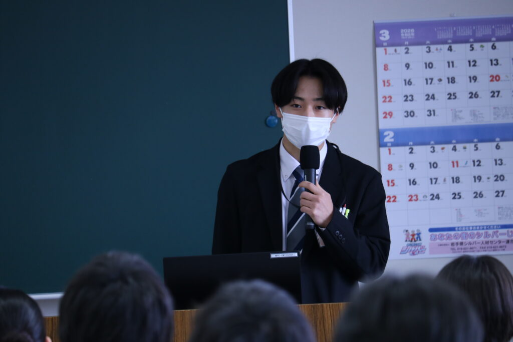 盛岡税務署様より、「よりよい社会の実現のため」と題し、税の仕組みや財政の現状についてご説明いただきました。自分が納める税金が社会の中でどのように使われているのかを理解し、社会保障制度について学ぶことができました。