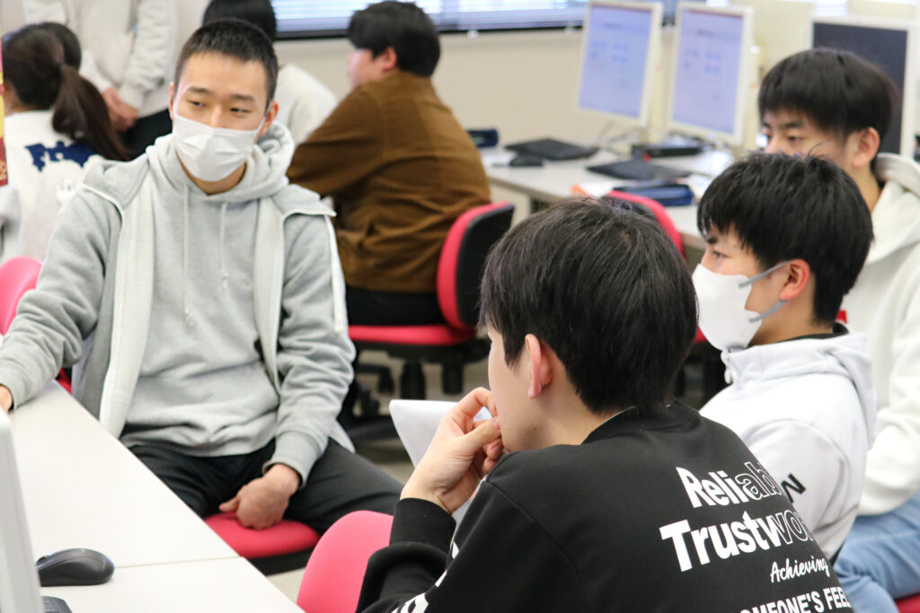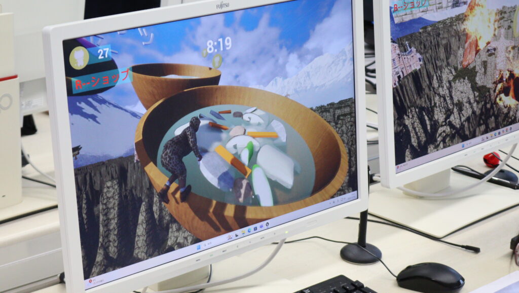 展示会では、制作途中ではあるものの、これまでの成果物を体験した1年生がクオリティの高さに驚いたり、オリジナルゲームを楽しんだりする様子が見られました。また、積極的に質問をしたり、感想を伝えたりする姿も見受けられ、学習交流として有意義な時間となりました。