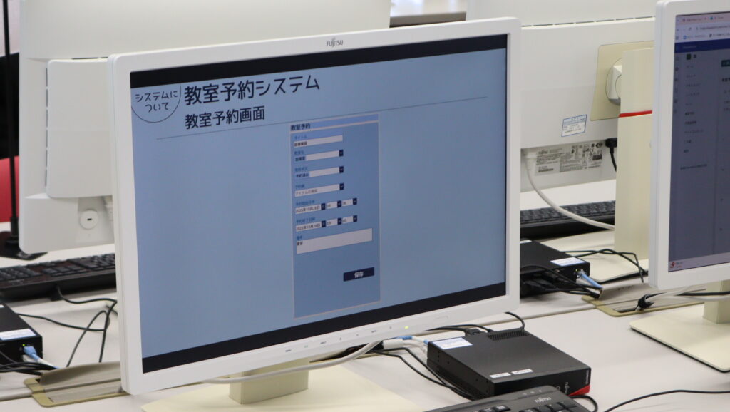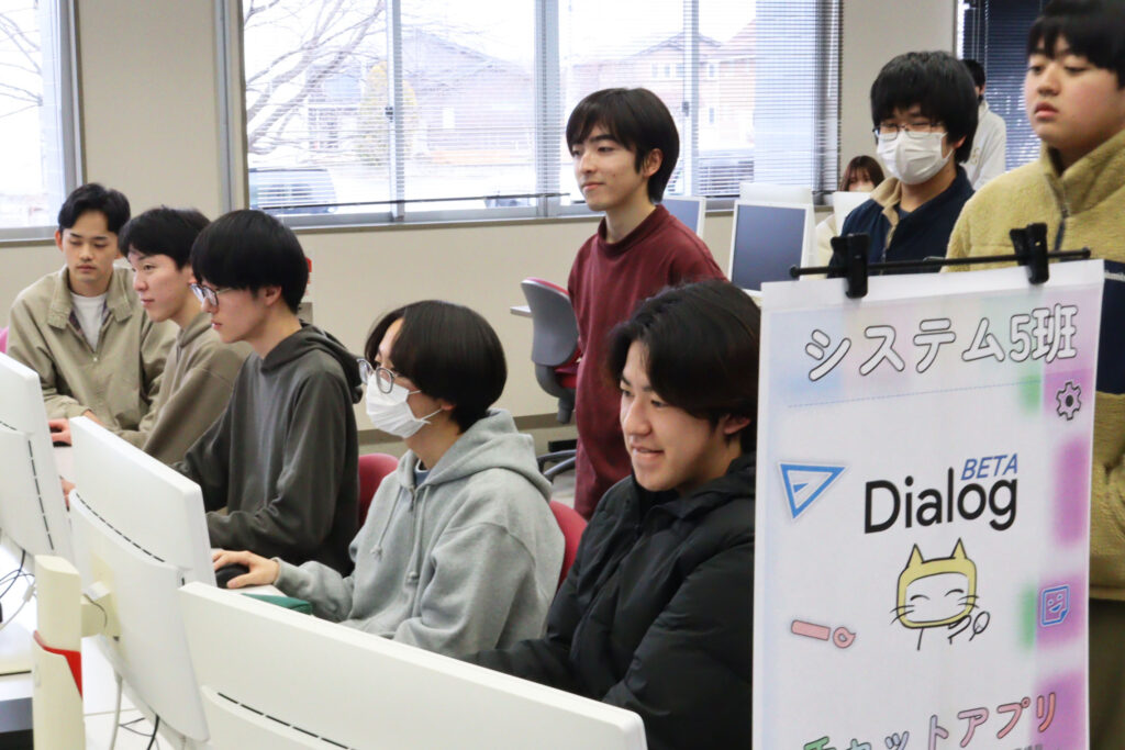 この展示会では、2年生が取り組んでいる卒業研究の現時点での成果を1年生に体験してもらい、意見や感想をもらうことで、研究内容のクオリティを高めることを目的としています。